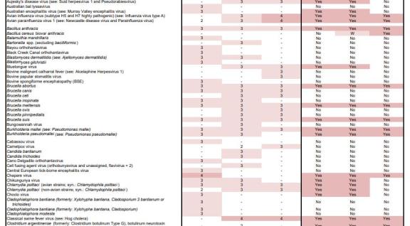 The Biosecurity Office has updated and translated the combined list of biological agents into English.
